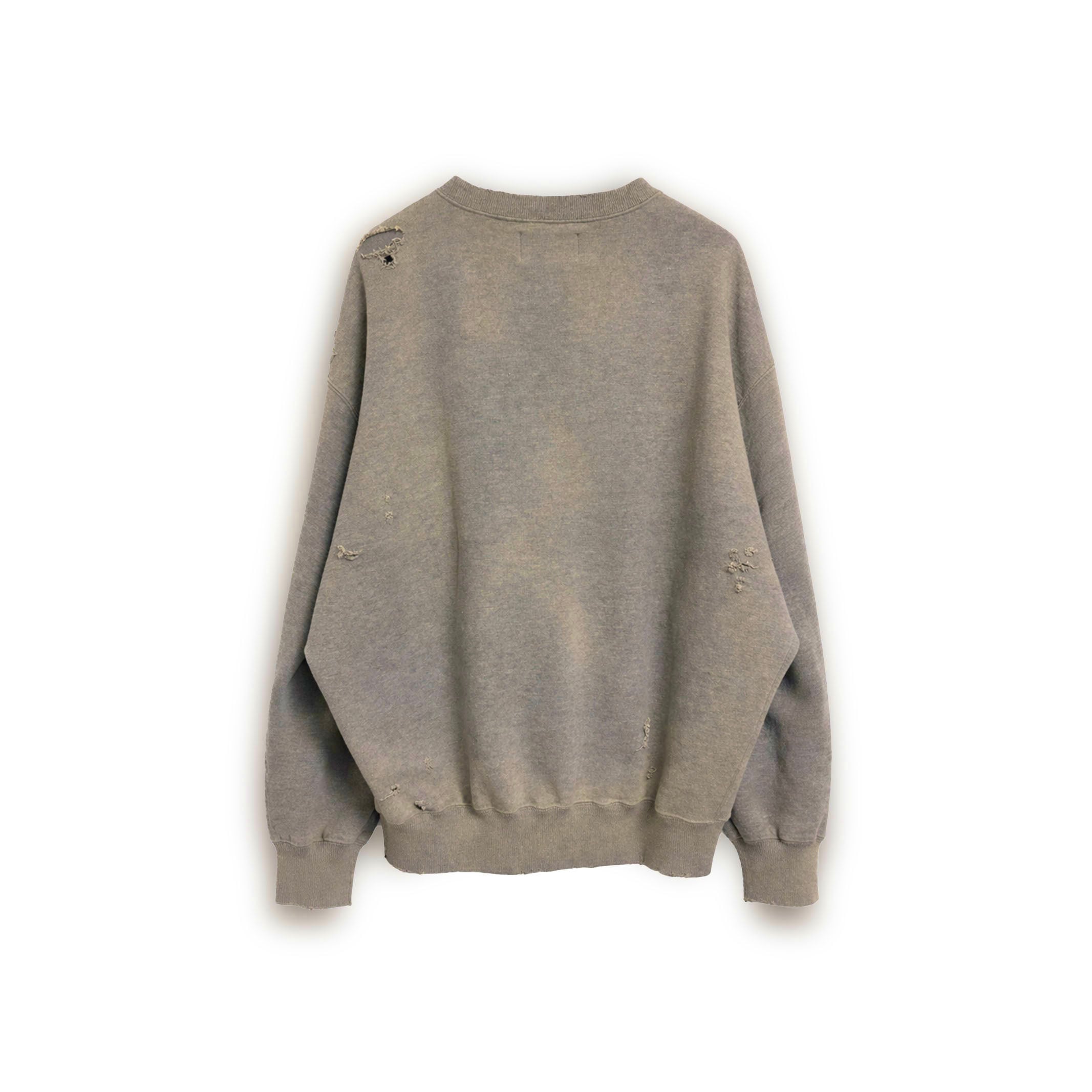 細かなダメージに加え、製品全体に黄ばみや劣化を思わせる独自のエイジング加工を施した、ブランドがニュークラシカルとして提案するクルースウェット。